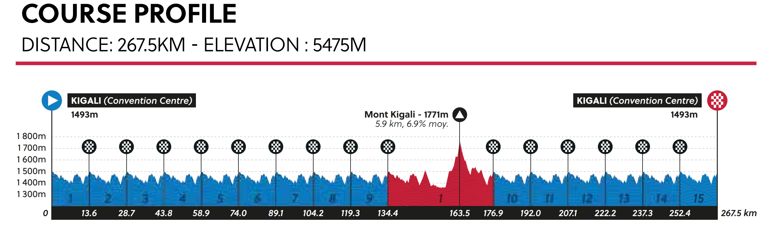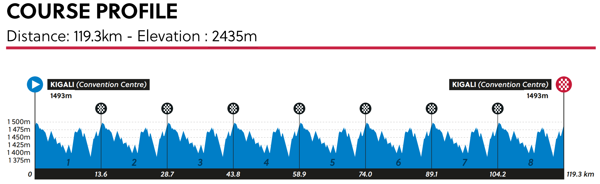 Sebastián Castro abrirá la participación nacional este viernes 26 de setiembre en el circuito de 15,1 kilómetros dispuesto para todas las categorías, con salida y llegada al Centro de Convenciones de Kigali. La categoría Juvenil masculina completará ocho vueltas de 13,6 kilómetros en la capital de Ruanda, acumulando 119,3 kilómetros y 2.435 metros de desnivel positivo.