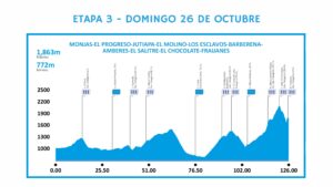 Este domingo se disputa la etapa 3, un trayecto rompedor de 126 km entre Monjas y Fraijanes, que incluye ocho puertos montañosos codificados y avanzará por Los Esclavos, Barberena, Amberes, El Salitre y El Chocolate. ¡Jornada exigente que promete marcar diferencias en la general!